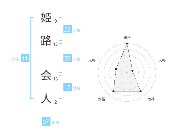 姫路 会人さんの総格は37画の5点!