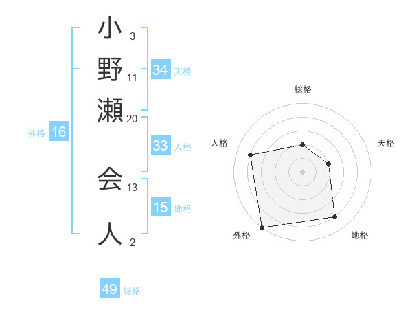 小野瀬 会人さんを姓名の画数から五運を鑑定