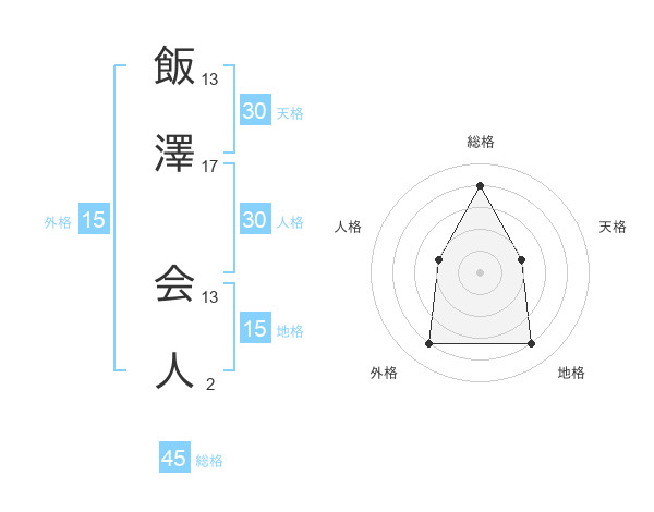 飯澤 会人さんの総格は45画の4点!