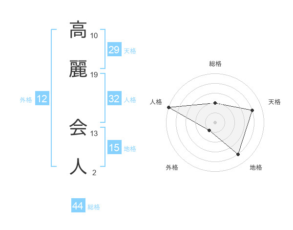 高麗 会人さんの総格は44画の2点!