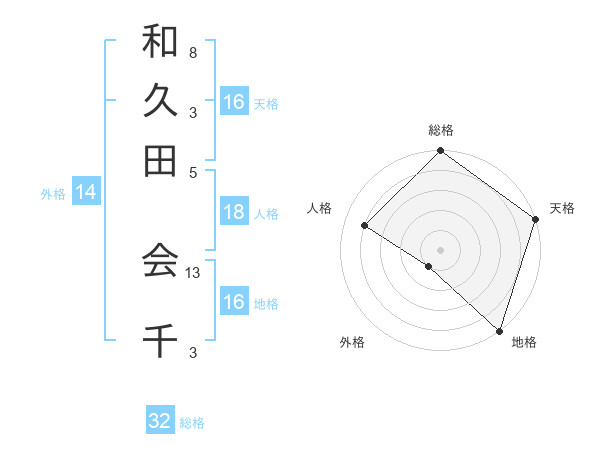 和久田 会千さんの総格は32画の5点!