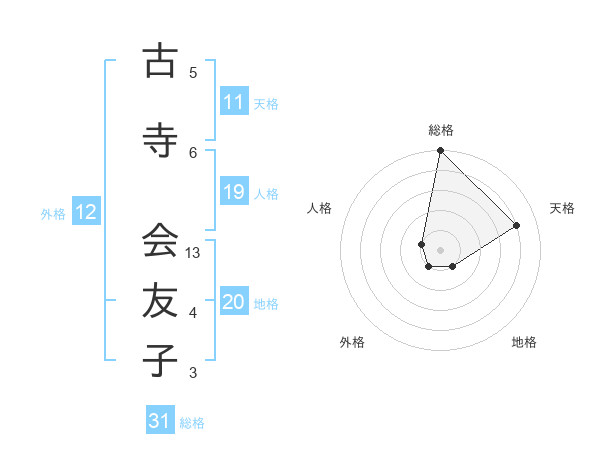 古寺 会友子さんを姓名の画数から五運を鑑定