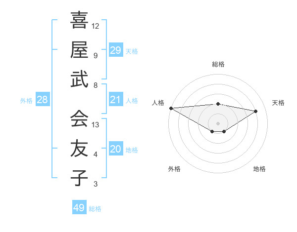 喜屋武 会友子さんを姓名の画数から五運を鑑定
