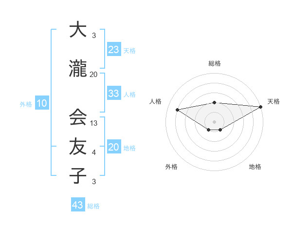 大瀧 会友子さんを姓名の画数から五運を鑑定
