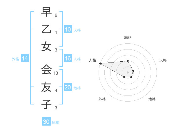 早乙女 会友子さんを姓名の画数から五運を鑑定
