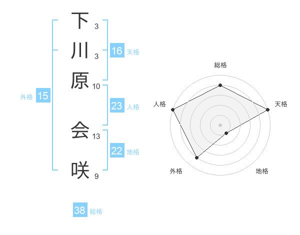 下川原 会咲さんの総格は38画の4点