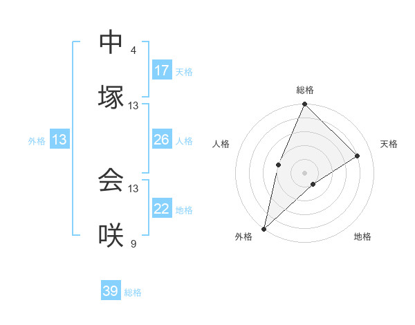 中塚 会咲さんを姓名の画数から五運を鑑定