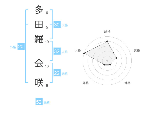 多田羅 会咲さんを姓名の画数から五運を鑑定