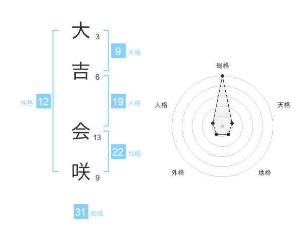 大吉 会咲さんを姓名の画数から五運を鑑定