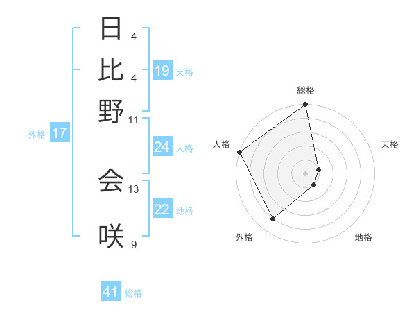 日比野 会咲さんを姓名の画数から五運を鑑定