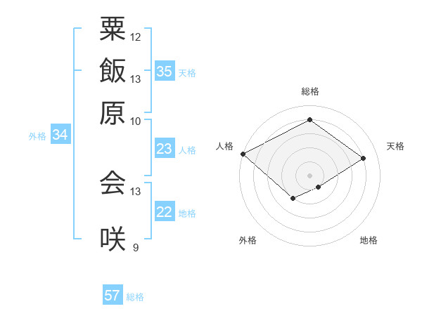 粟飯原 会咲さんを姓名の画数から五運を鑑定
