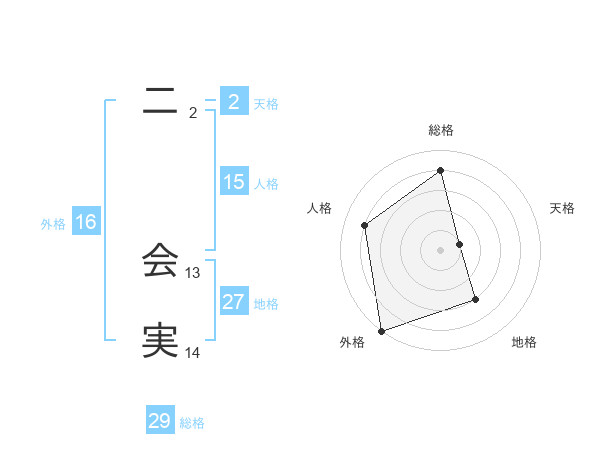 二 会実さんの総格は29画の4点!