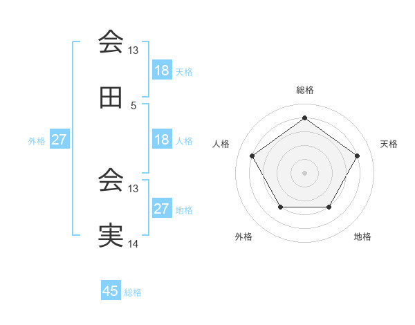 会田 会実さんの天格は18画の4点!