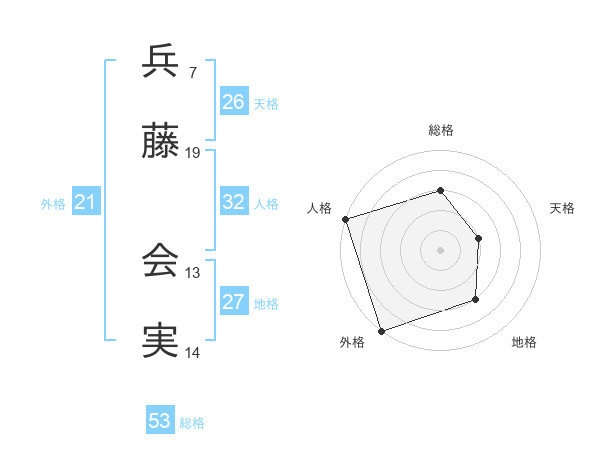兵藤 会実さんを姓名の画数から五運を鑑定