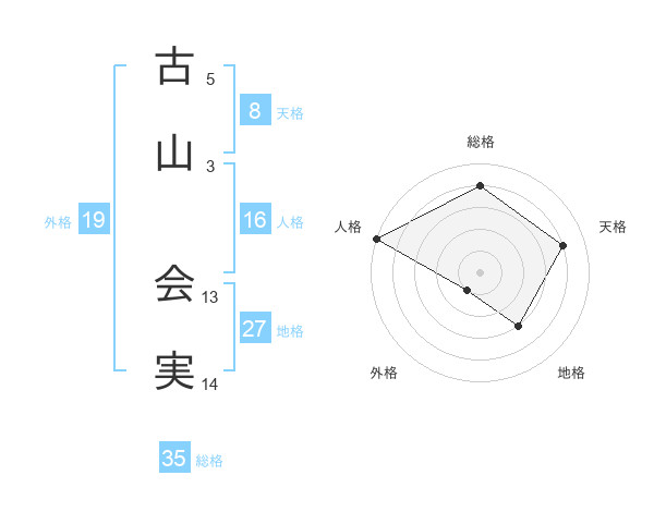 古山 会実さんを姓名の画数から五運を鑑定