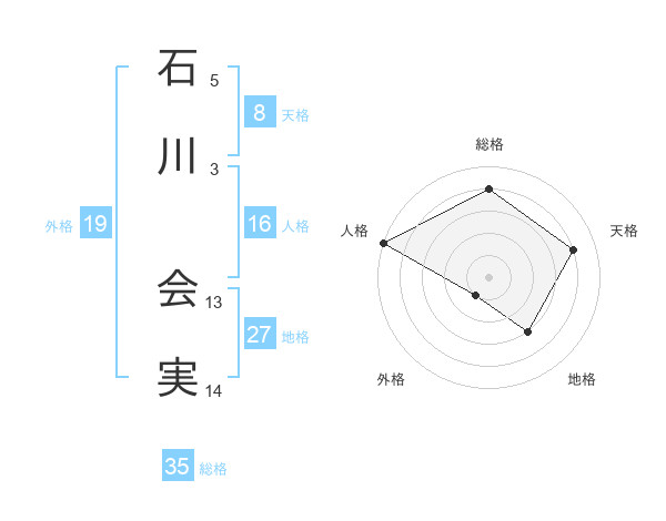 石川 会実さんの天格は8画の4点!