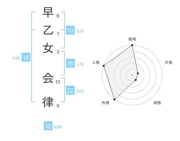 早乙女 会律さんの総格は32画の5点!