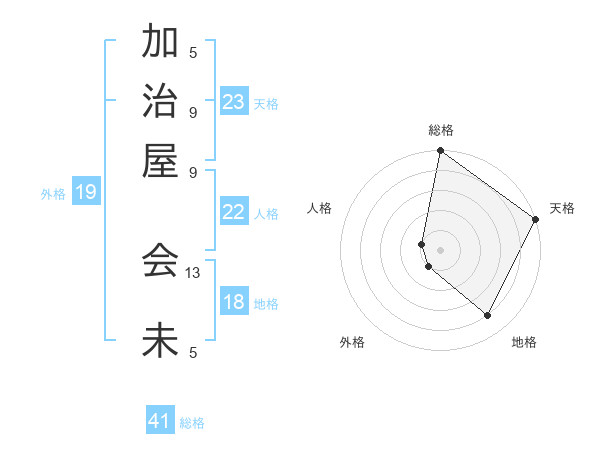 加治屋 会未さんの総格は41画の5点