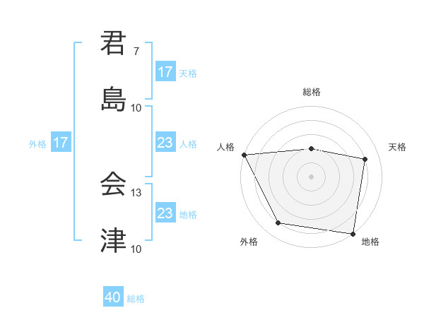 君島 会津さんの天格は17画の4点!