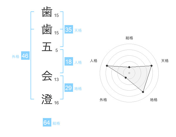 歯歯五 会澄さんの外格は46画の1点!