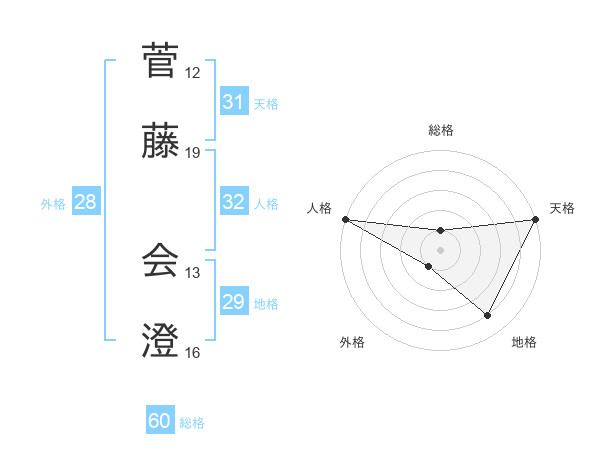 菅藤 会澄さんの総格は60画の1点!