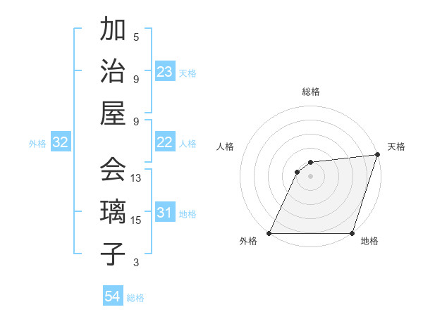 加治屋 会璃子さんを姓名の画数から五運を鑑定
