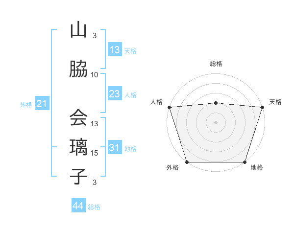 山脇 会璃子さんを姓名の画数から五運を鑑定