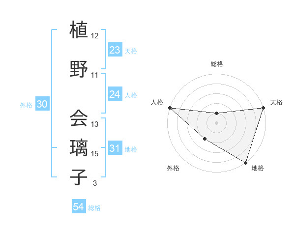 植野 会璃子さんの総格は54画の1点