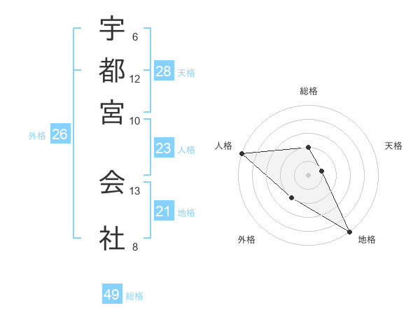 宇都宮 会社さんの地格は21画の5点!
