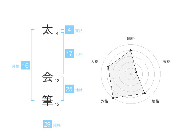 太 会筆さんの総格は29画の4点!