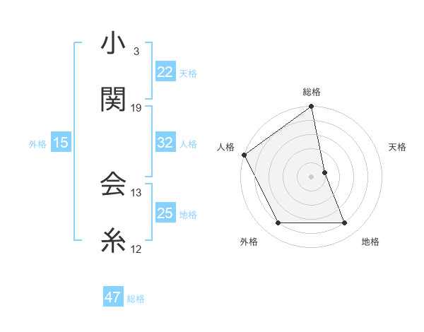小関 会糸さんの総格は47画の5点!