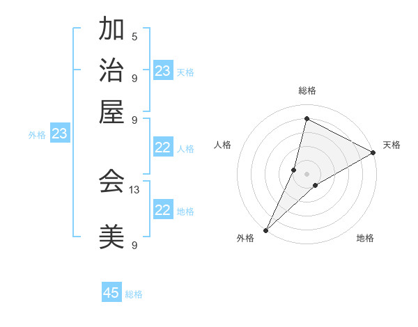 加治屋 会美さんの総格は45画の4点