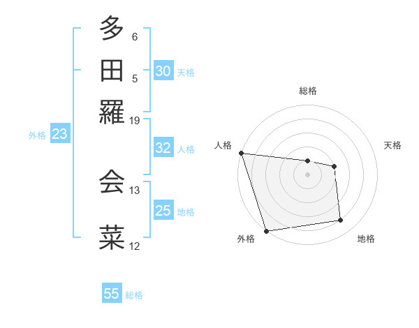 多田羅 会菜さんを姓名の画数から五運を鑑定