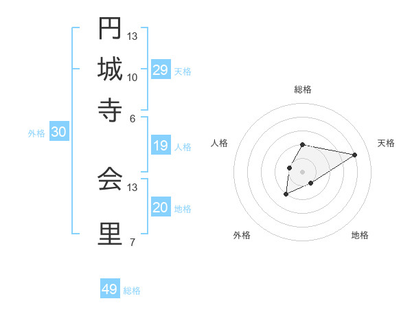 円城寺 会里さんの総格は49画の2点!