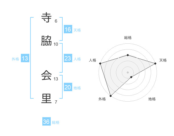 寺脇 会里さんの外格は13画の5点!