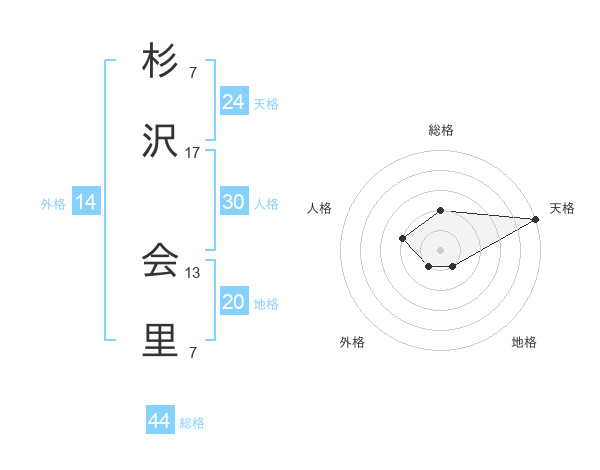 杉沢 会里さんの天格は24画の5点!