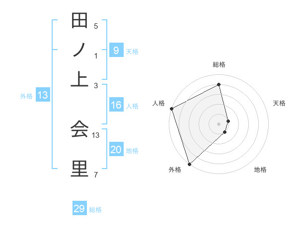 田ノ上 会里さんを姓名の画数から五運を鑑定