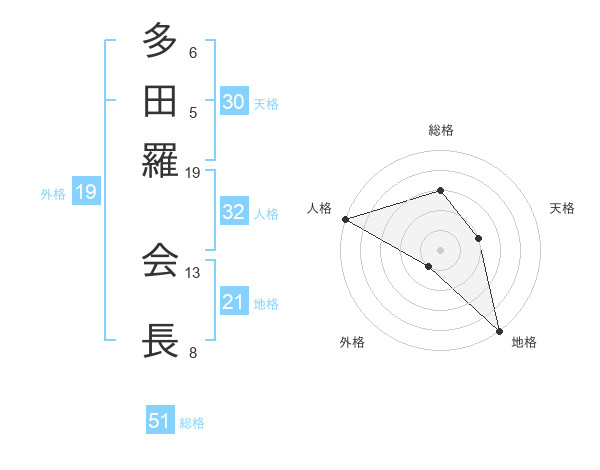 多田羅 会長さんを姓名の画数から五運を鑑定