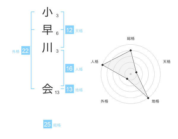 小早川 会さんの地格は13画の5点!