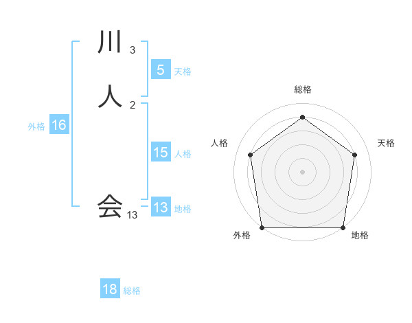川人 会さんの地格は13画の5点!