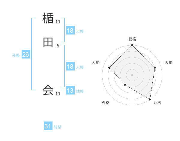 楯田 会さんの地格は13画の5点!