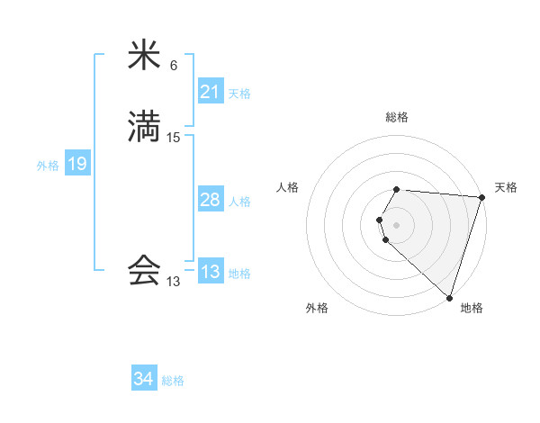 米満 会さんの総格は34画の2点!