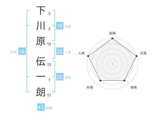 下川原 伝一朗さんの総格は41画の5点!