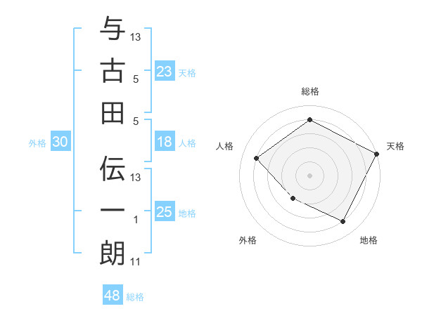 与古田 伝一朗さんの天格は23画の5点!