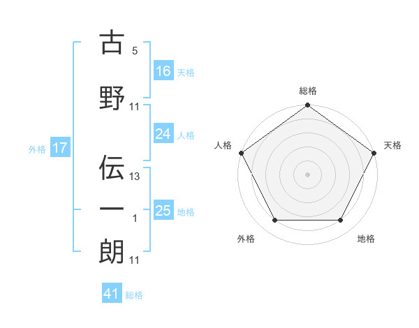 古野 伝一朗さんを姓名の画数から五運を鑑定