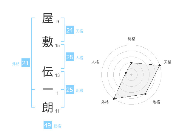 屋敷 伝一朗さんの天格は24画の5点!