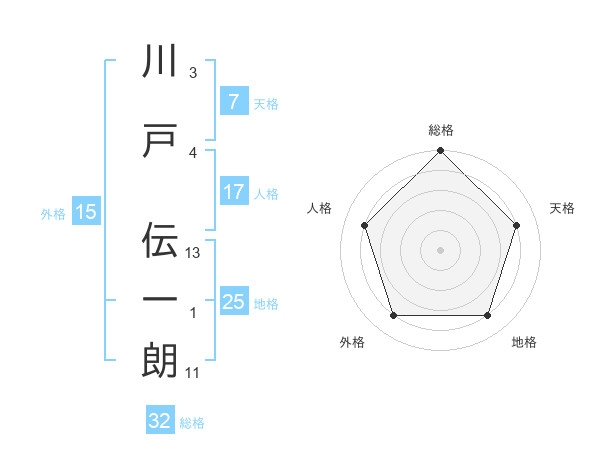 川戸 伝一朗さんの総格は32画の5点!