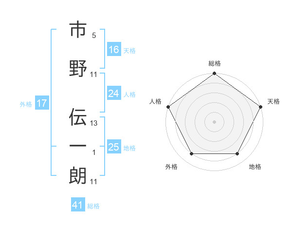 市野 伝一朗さんの総格は41画の5点!