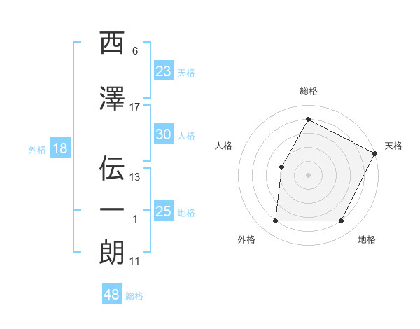 西澤 伝一朗さんを姓名の画数から五運を鑑定