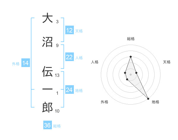 大沼 伝一郎さんを姓名の画数から五運を鑑定